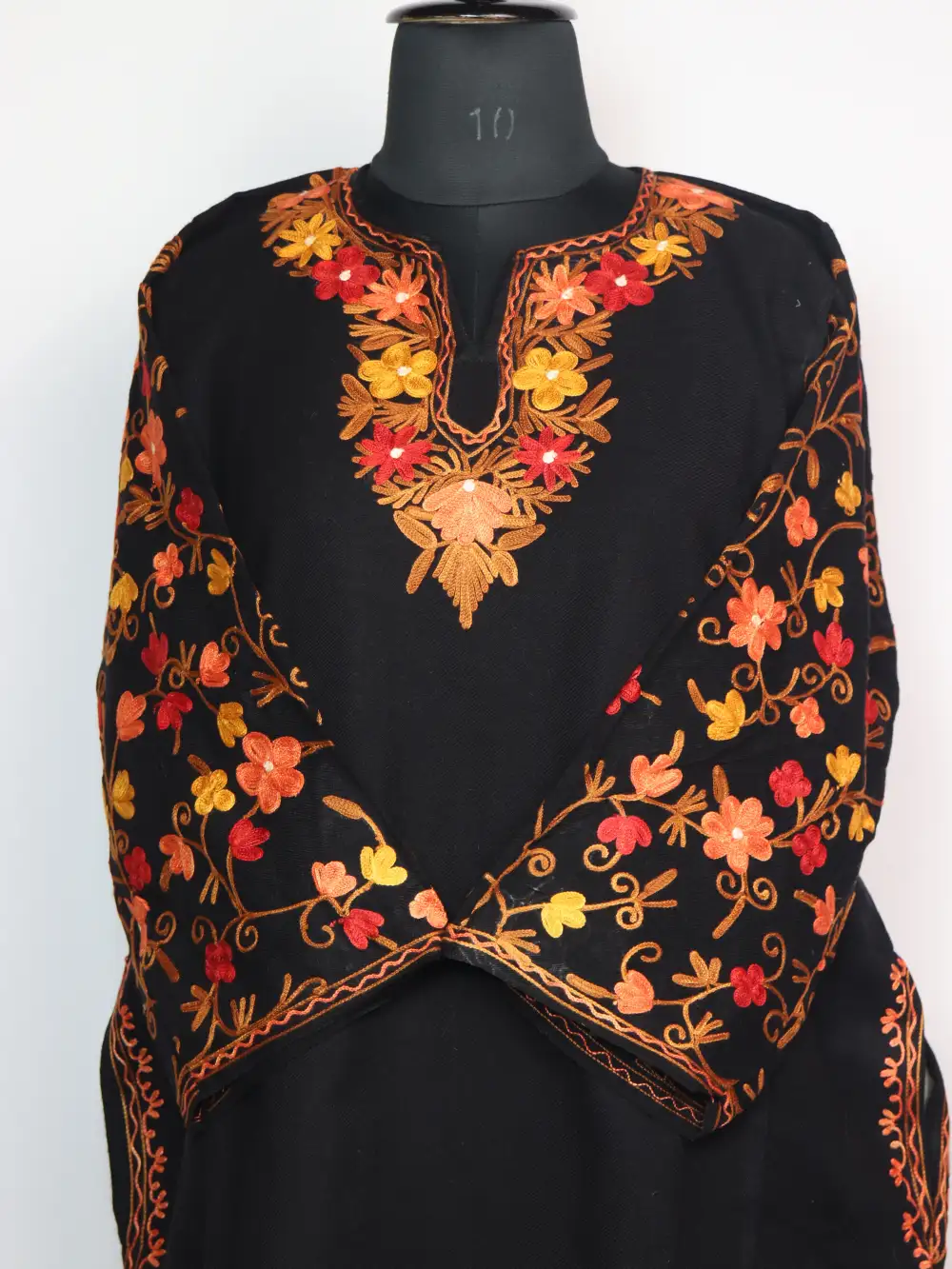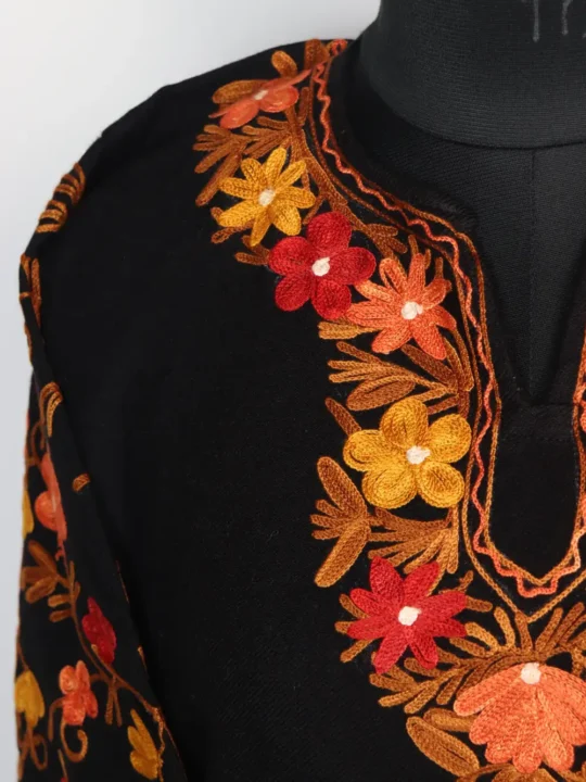 Crafted in comfortable cashmilon wool, this feran comes with posh bagh aari embroidery around the neckline and rich jaal work on the sleeves, making it perfect for cold winter days.