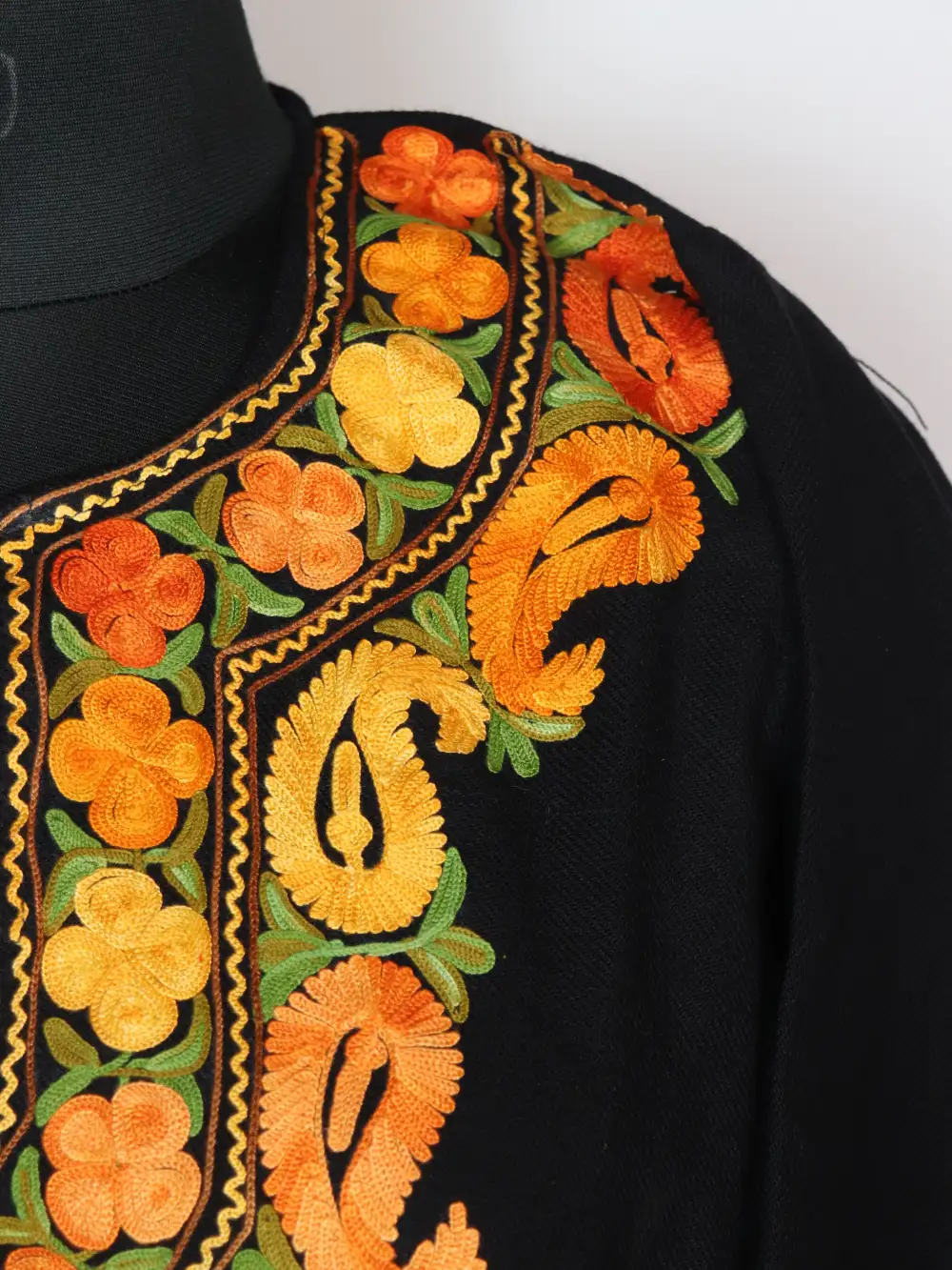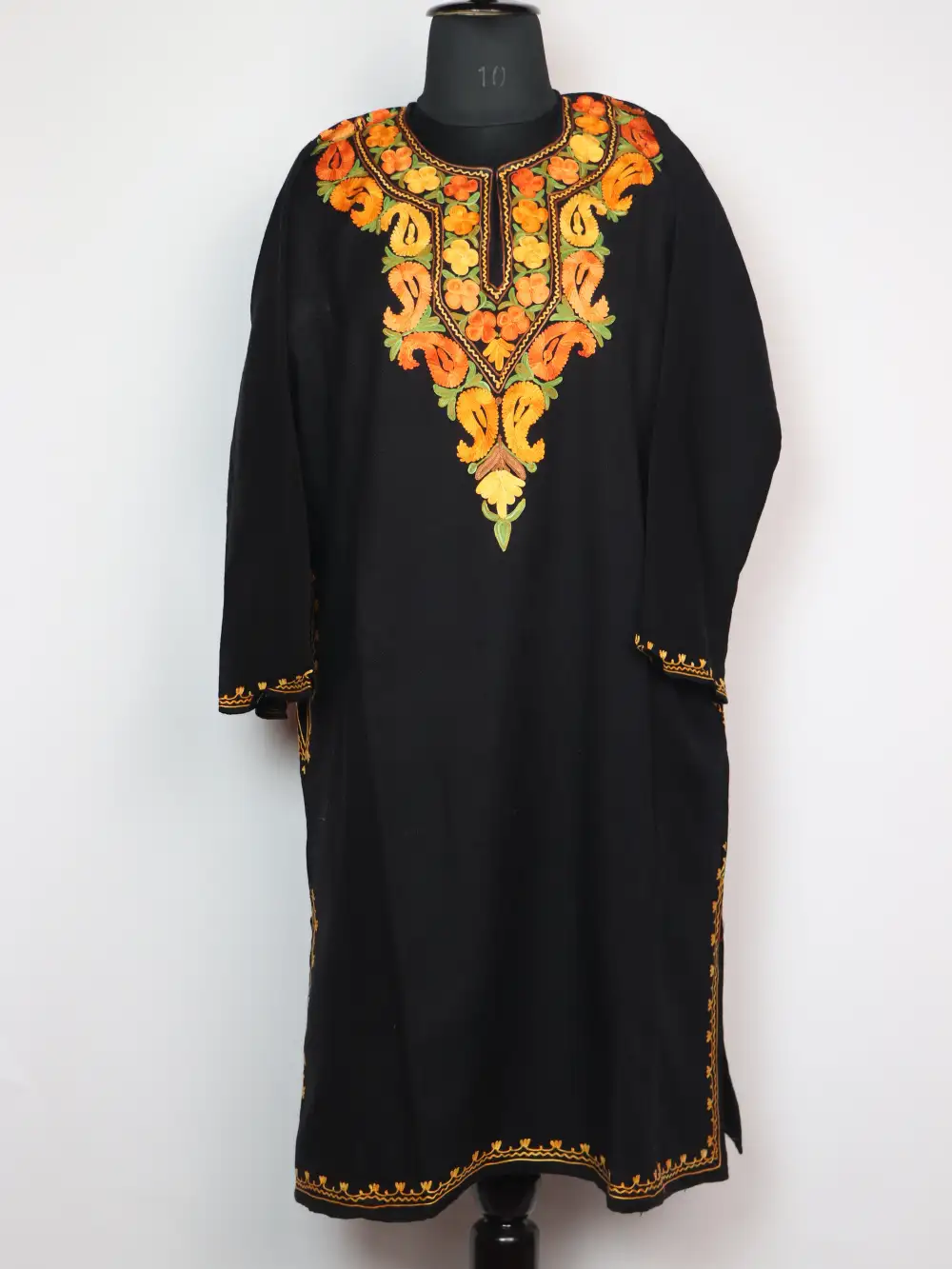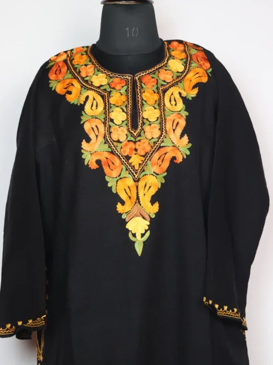 Elegant kashmiri traditional dress woven from Cashmilon wool with beautiful badam and floral motifs around neckline.