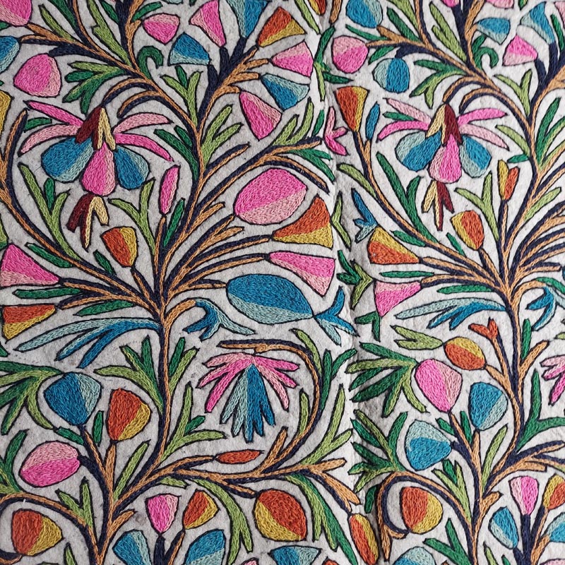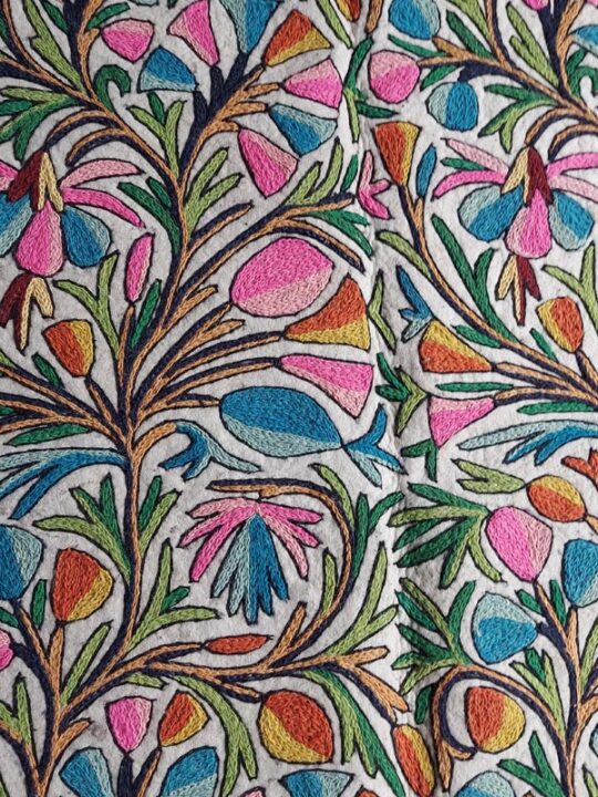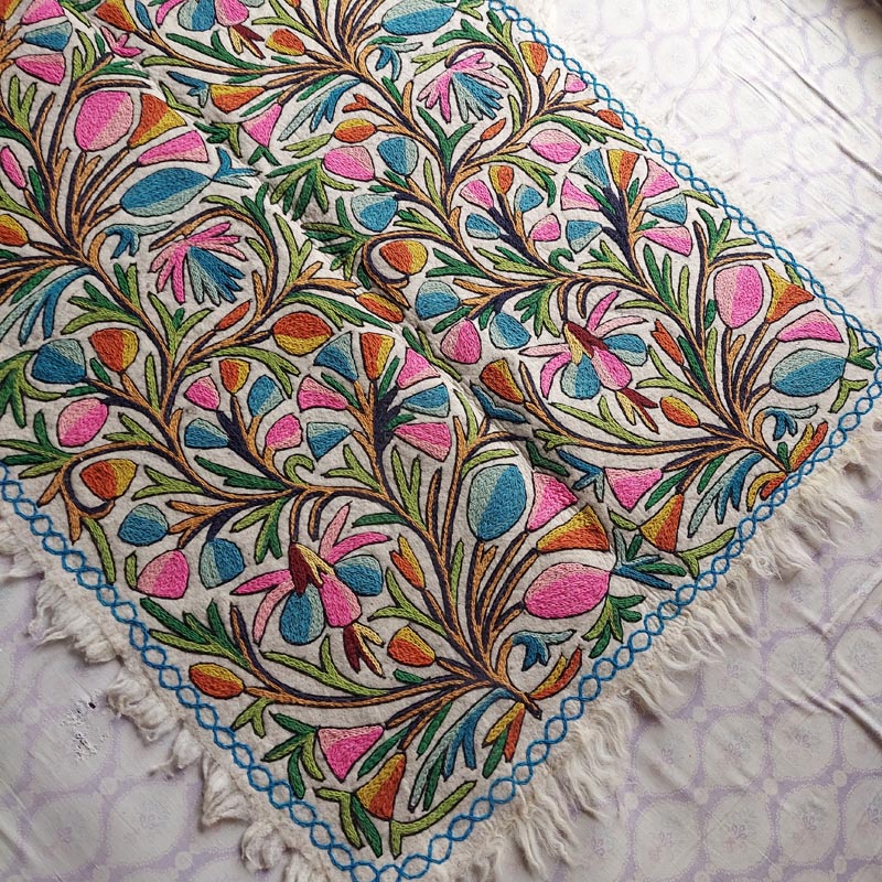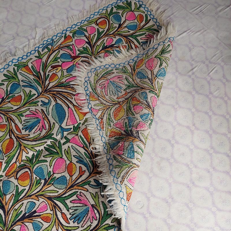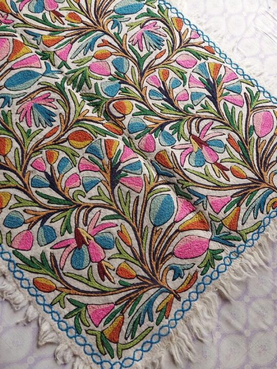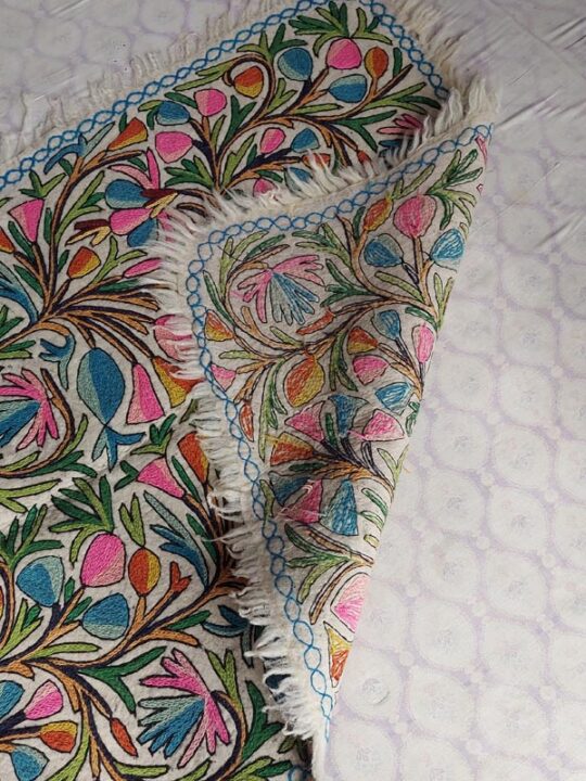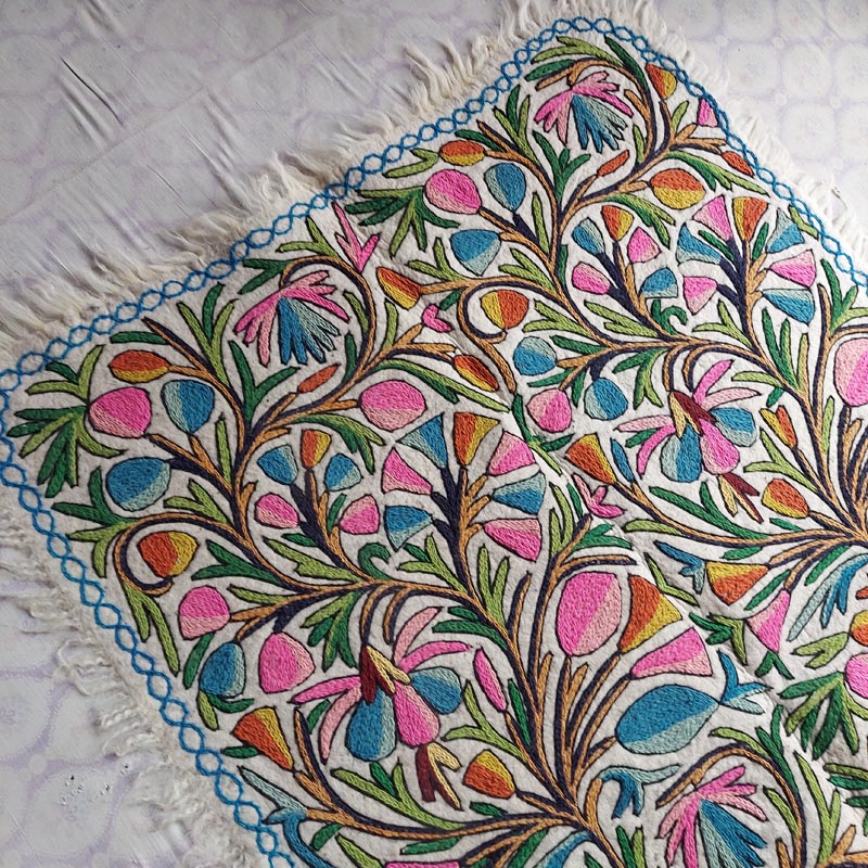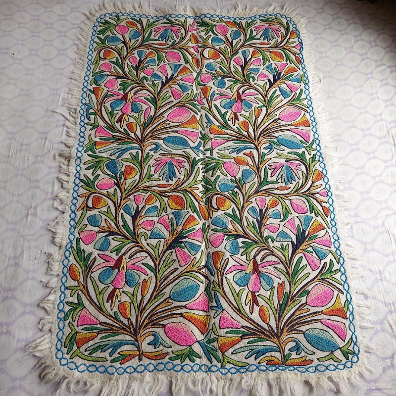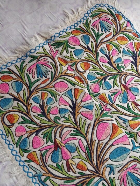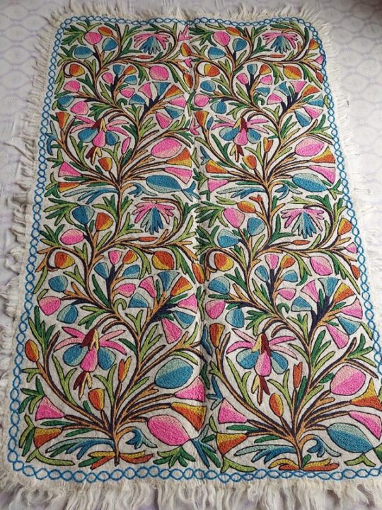 This is a beautiful large Namda rug of size 6×4 Feet. Its made of pure wool and is handmade. This specific rug is very special due to the “full embroidery” it takes around 4 weeks to create an embroidered felt rug like this.