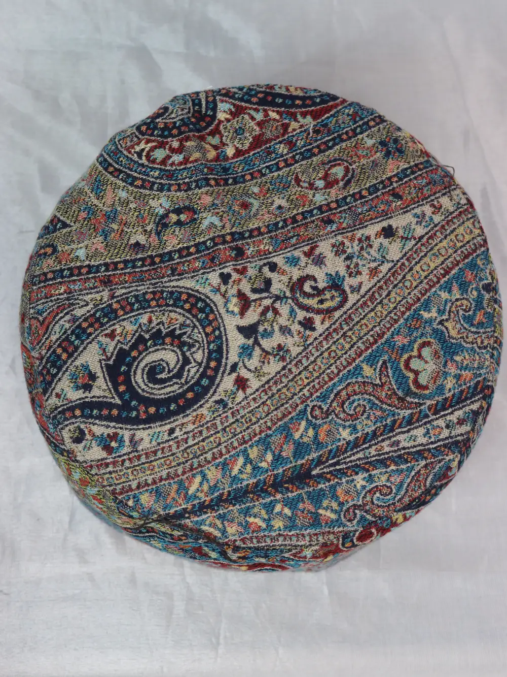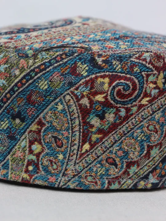 This premium 23.5 inch sized Kani Cap is made of Kani Shawl with badam inspired designs done on it. This foldable cap represents Kashmiri luxury and is ideal for gifting, or cultural gatherings. Its elegant weaving and lightweight comfort make this handmade topi a must-have accessory for traditional wardrobes.
