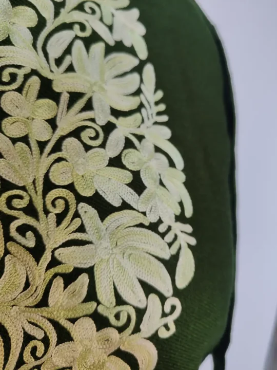 Stylish Kashmiri pheran for girls is crafted in cashmilon for a warm, gentle fall. Aari embroidery blooms in floral detail at the neckline.