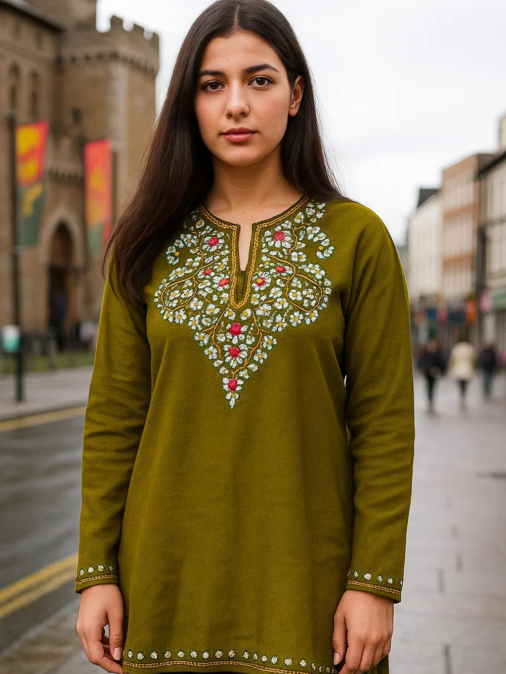 Note: The actual color of the pheran may differ slightly due to photography effects