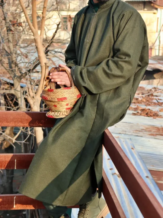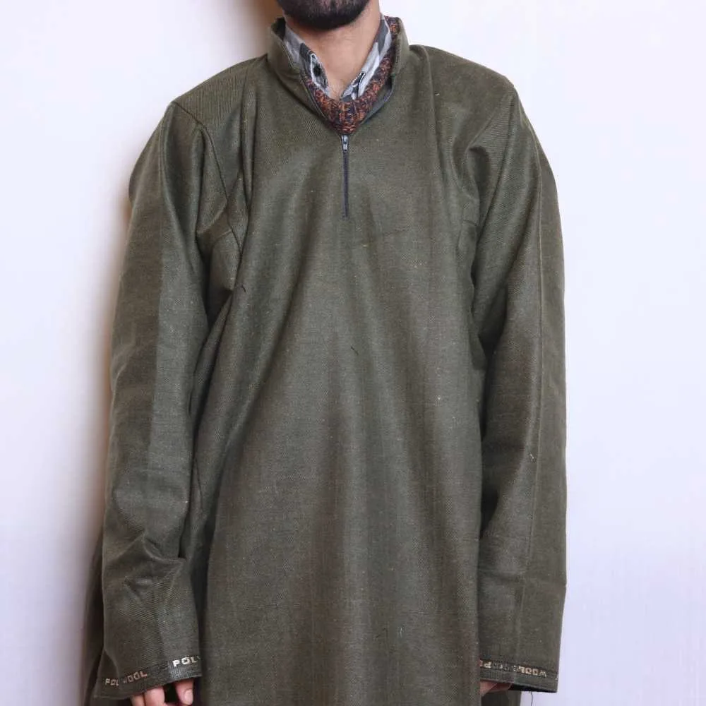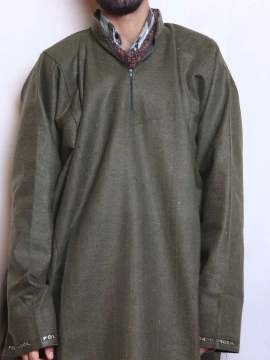 This medium brown tweed pheran is designed for warmth and style, with a beautiful cut that makes it ideal for winter. It is a perfect blend of Kashmiri heritage and comfort.
