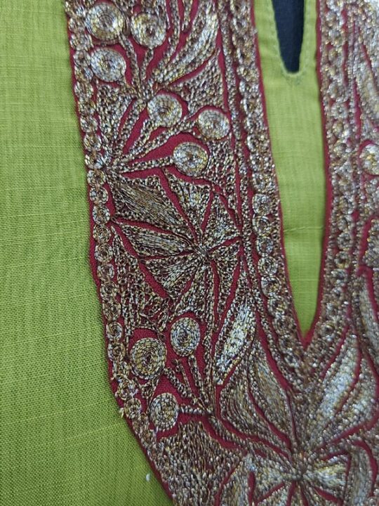 This is a beautiful Kashmiri tilla all-weather pheran made from cotton.Ā