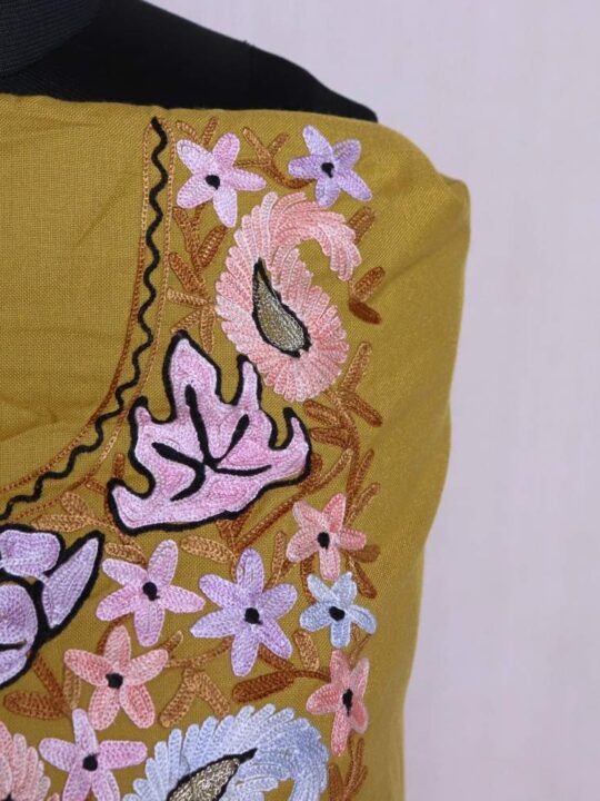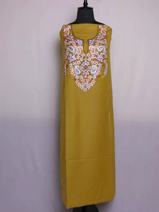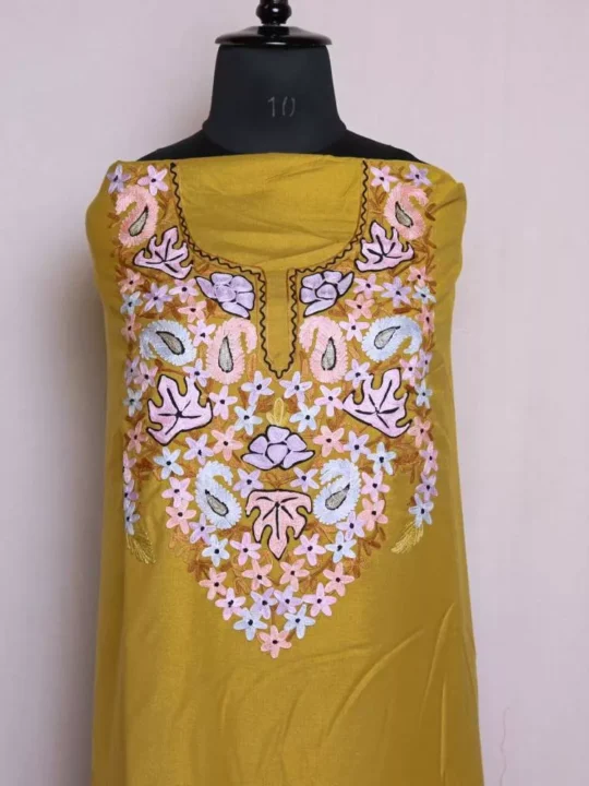 This 2-piece suit has a simple kind of charm, and that’s exactly what makes it work. Its spun fabric feels good, in both moderate and cold weather, and the Kashmiri aari embroidery adds some cultural detail without making it overly formal. It’s easy, it’s useful, and it looks good every time