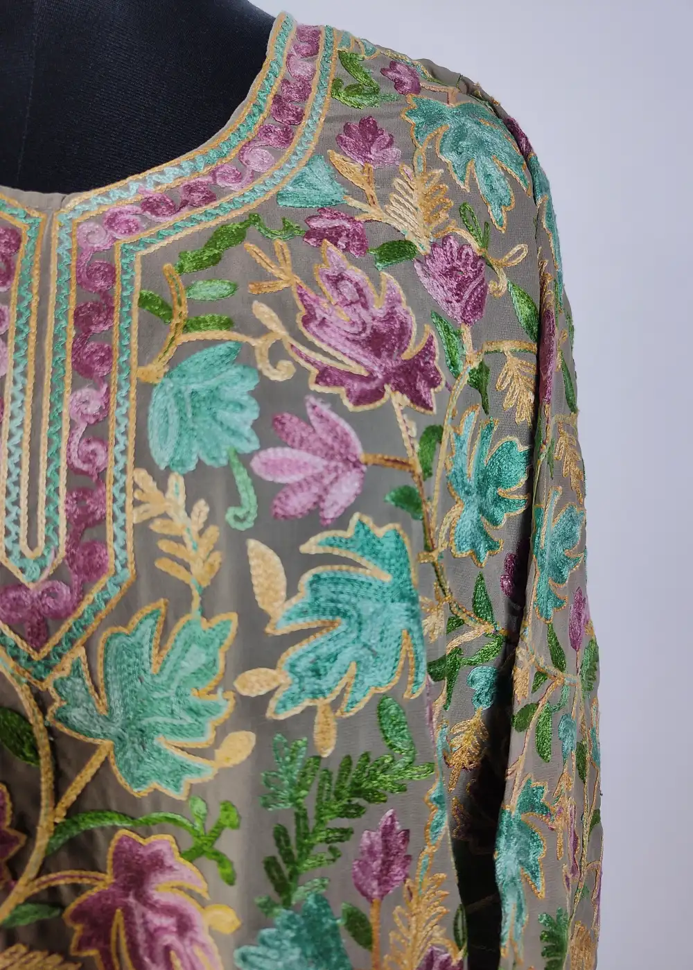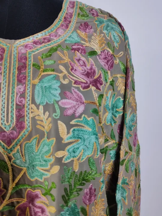 Gulbahar Lavender 2pc Kashmiri Unstiched Suit in Summer Cool Cotton with Aari Embroidery