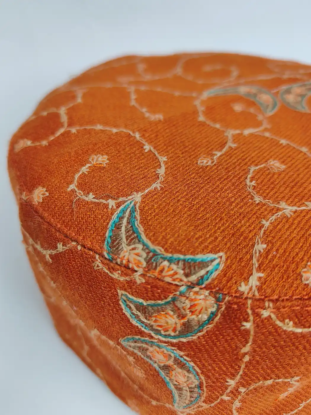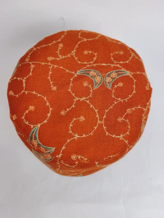 If you like pieces that don’t rely on heavy embroidery but still feel special, this orange sozni cap is for you. There is heavy embroidery, but the beauty runs all over through its vine sozni work. The colour feels festive, the embroidery feels alive, and the simplicity makes it easy to wear while still standing out naturally.