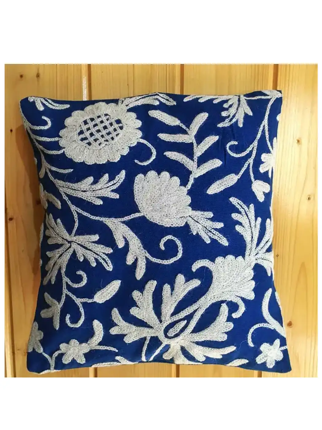 Bring home the timeless beauty of Kashmir with this hand embroidered Kashmiri crewel cushion cover (12×12 inch), crafted by skilled artisans using traditional techniques passed down through generations. Designed on premium Dusoot cotton fabric and adorned with intricate wool crewel embroidery, this cushion cover adds a rich, artistic charm to any space.