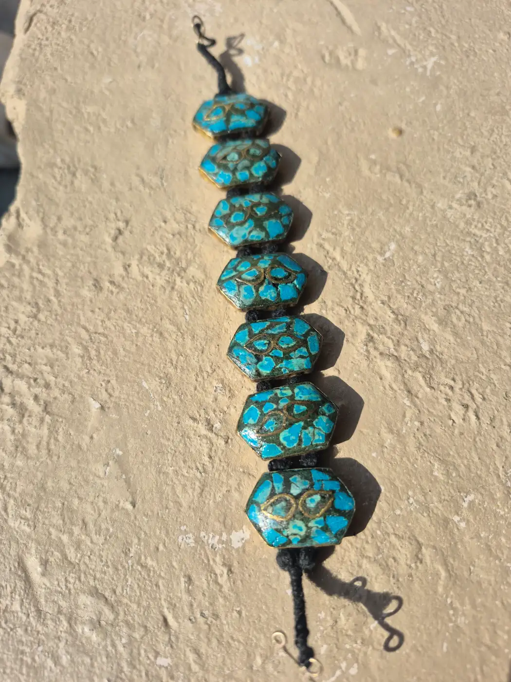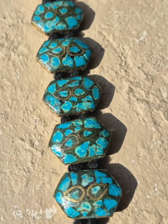 Spectacular in appearance, “Turquoise” is a magnificent Kashmiri craft that is unknown to most people due to very few artisans being involved with it now. This craft uses a special type of Ladhaki creamish-green stone called Pashm or Hakikh that are found in mountainous regions of Ladakh. The craft also known as Ferozi is named after the breathtaking oceanic shade of blue. This is due to the fact that the stones used in the craft are painted blue since the inception of the craft.