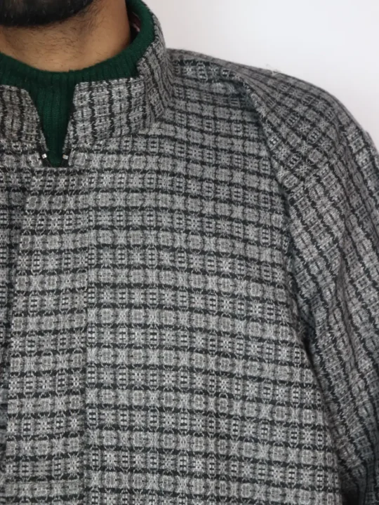 A sturdy phiran dress in Tweed wool for men, grey in colour, fitted chest size 62 inches and length 48 inches and it includes pocket on right side for daily carry.