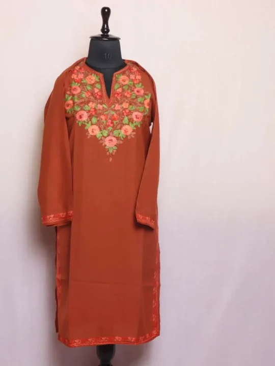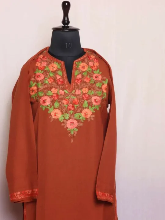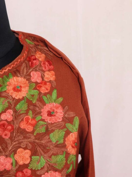 This Kurti is designed to keep you cool and stylish during the summer. Made from lightweight cotton and detailed with Aari embroidery, it blends comfort with a touch of Kashmiri charm. Ideal for sunny days.
