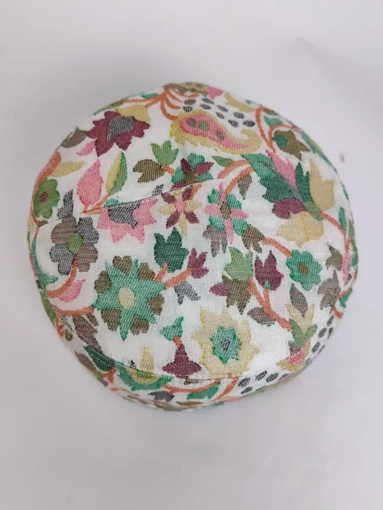 Created in Kani Shawl fabric, this white colour gents cap presents a sharp profile and fine finish. Its woven motifs express cultural depth and elegant detail.