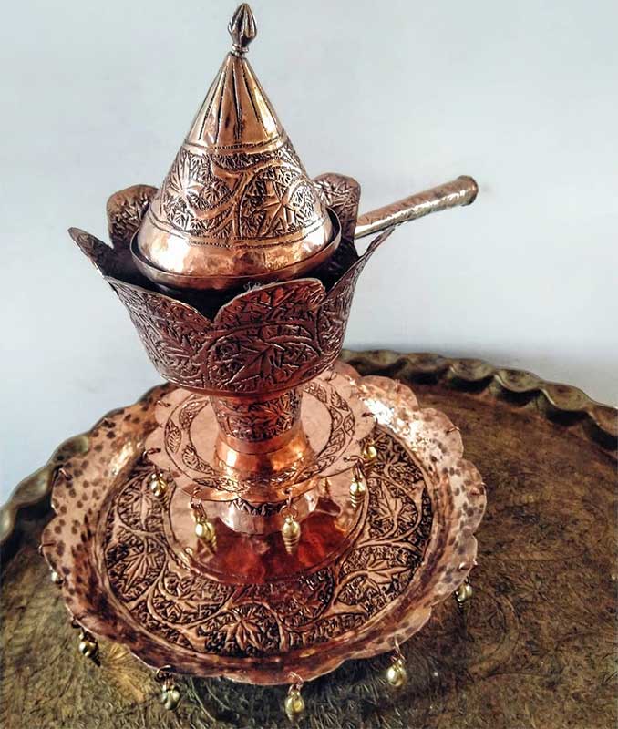 The copper Izband Soz, a marvel of craftsmanship, radiates in its splendor. Its purpose, noble and ancient, lies in facilitating the burning of the Izband. With its intricate design and sturdy build, it serves as a vessel for the sacred ritual, igniting the fragrant smoke that carries prayers to the divine. Each detail etched into its surface tells a story of tradition and reverence, making it a cherished artifact in rituals and ceremonies.