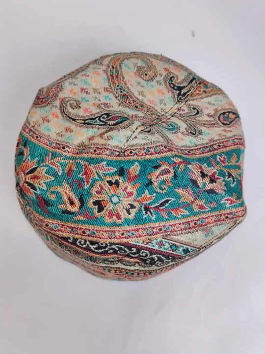 Crafted in Kani Shawl fabric,this beige colour royal cap carries Kashmiri woven patterns with fine detailing. It offers neat fitting, and adds traditional identity to attire and gatherings for special occasions.