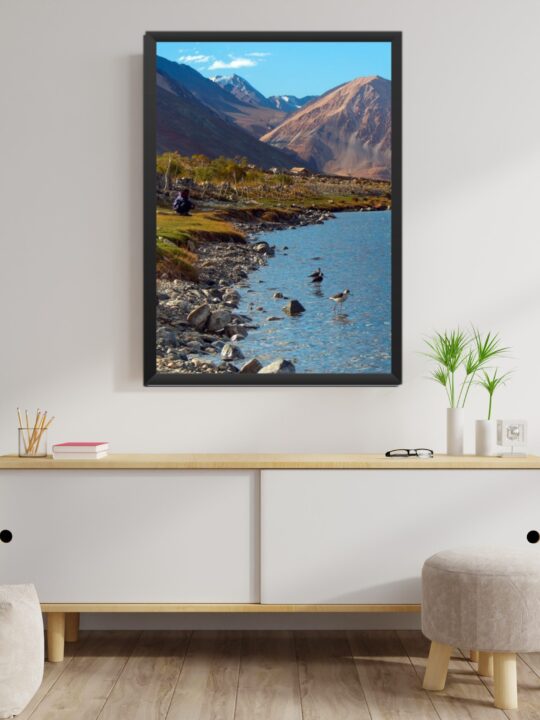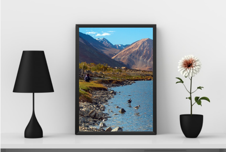 300 GSM art board paper | HD quality | Matte Laminated | Acrylic front and a medium-density fibre wood back | 1-inch thick black frame | Ready for wall mount