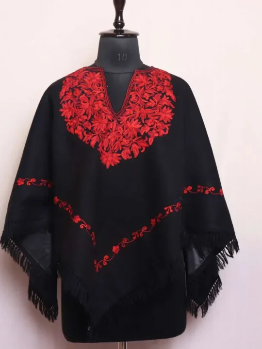 Wrap yourself in the charm of Kashmir with this soft and warm embroidered poncho