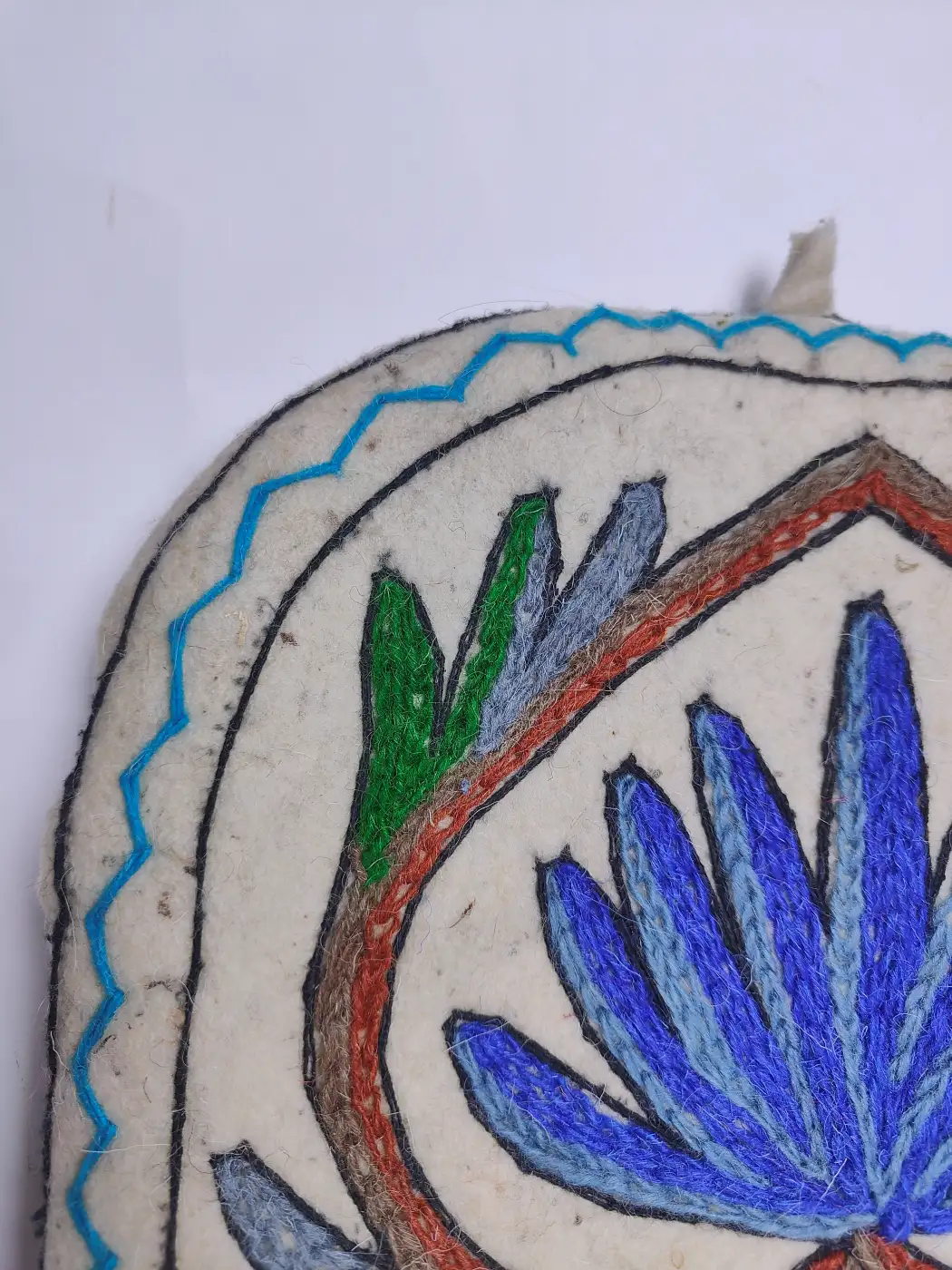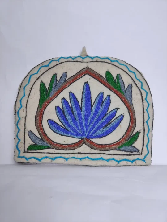 This tea cozy is made from traditional wool namda and then some talented hands go over it with hand Aari embroidery. Every single stitch is done with a tiny hook, no shortcuts.The namda wool base traps heat, so your tea stays garam for almost an hours while you finish your call.