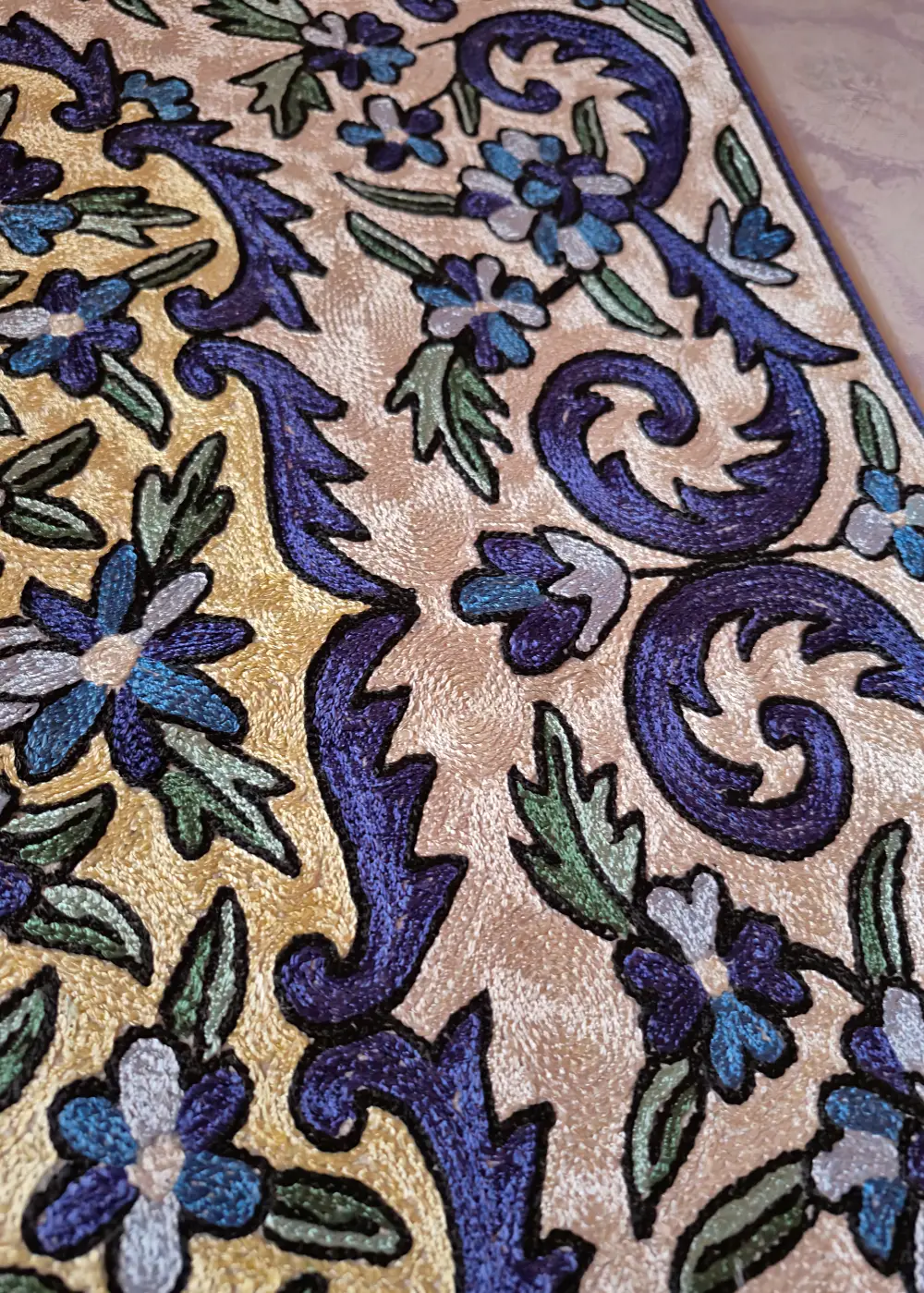 | Craftmanship | Handmade chain-stitch embroidery |