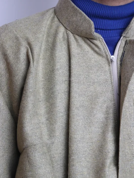 Stylish Kashmiri pheran in light brown colour is crafted in tweed for warm Kashmiri layering, offering a composed winter fall in black. It carries chest size 57 inches and length 49 inches, giving a structured and relaxed silhouette suited for cold days.