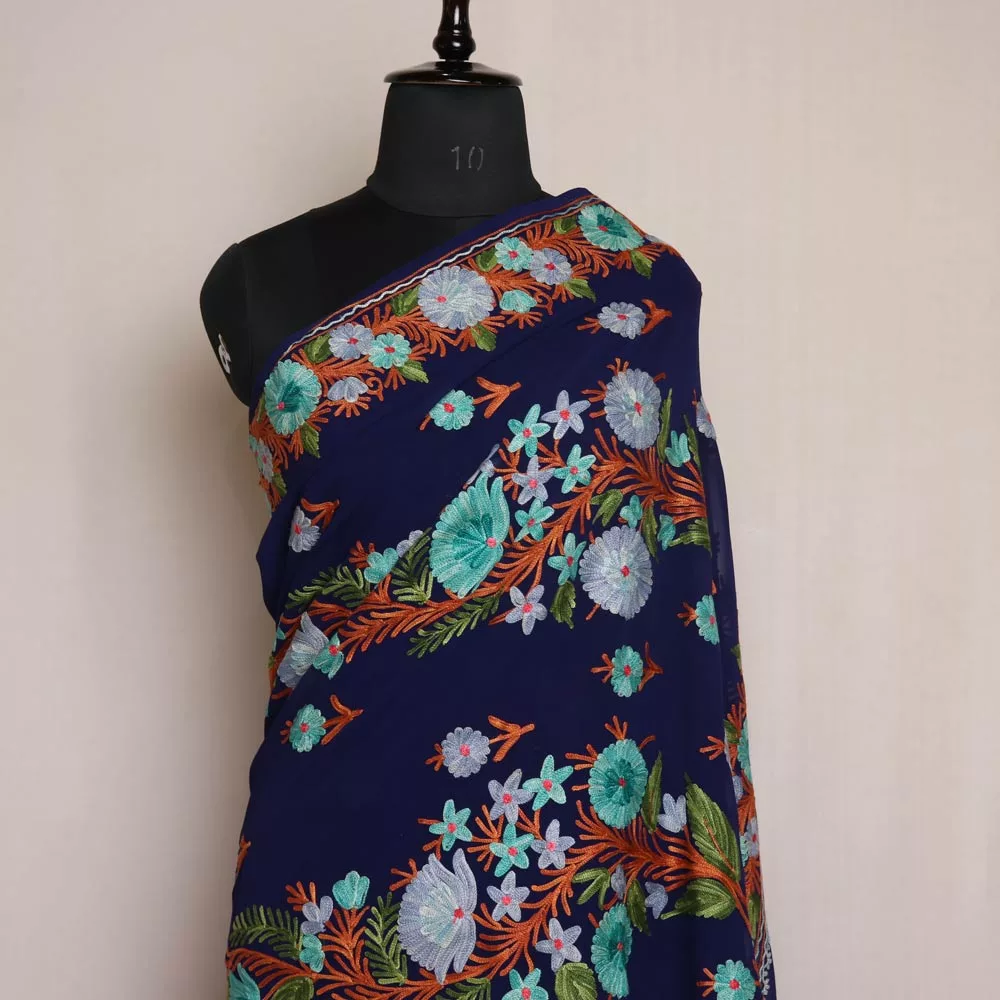 Ever wanted to feel like royalty without the weight of an actual crown (or lehenga)? This kashmiri georgette saree is your shortcut. Floaty fabric, pretty Kashmiri embroidery, and no wardrobe regrets. Throw it on, add a pair of jhumkas, and watch the compliments roll in.
