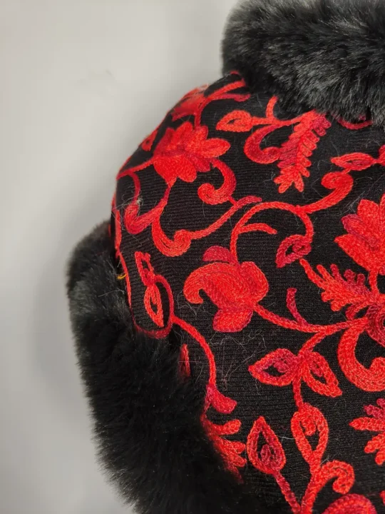 Soft Cashmilon Wool gives this kids Fur Poncho its winter weight and warmth for girls, with Aari embroidery spread all over in red florals and vines. Cut for a 22 inch chest and 14-inch length, the fit allows free movement and cosy layering. This kadhai reads like delicate stitching across the black surface. Fur Poncho brings gentle comfort and makes a lovely pick among floral Kashmiri embroidered poncho for girls.