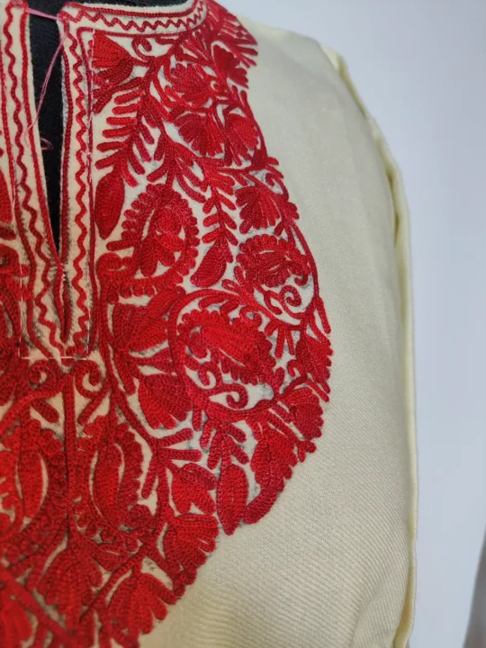 Stylish Kashmiri feran made for kids comes in cashmilon wool with soft drape and floral aari embroidery at the neckline. Its both-side pockets add comfort. A warm daily pick for kids who enjoy elegant detailing.