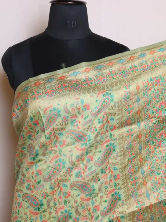 This green Cotton and Silk saree is made right here in Kashmir and features the kind of traditional kani work that brings a sense of heritage into everyday wear. It’s lightweight, breathable, and ideal for summers—easy to carry, easy to love. You’ll notice the neat embroidery running through the body, offering just the right amount of detail. Simple to drape, this is the kind of piece that fits both everyday comfort and casual gatherings