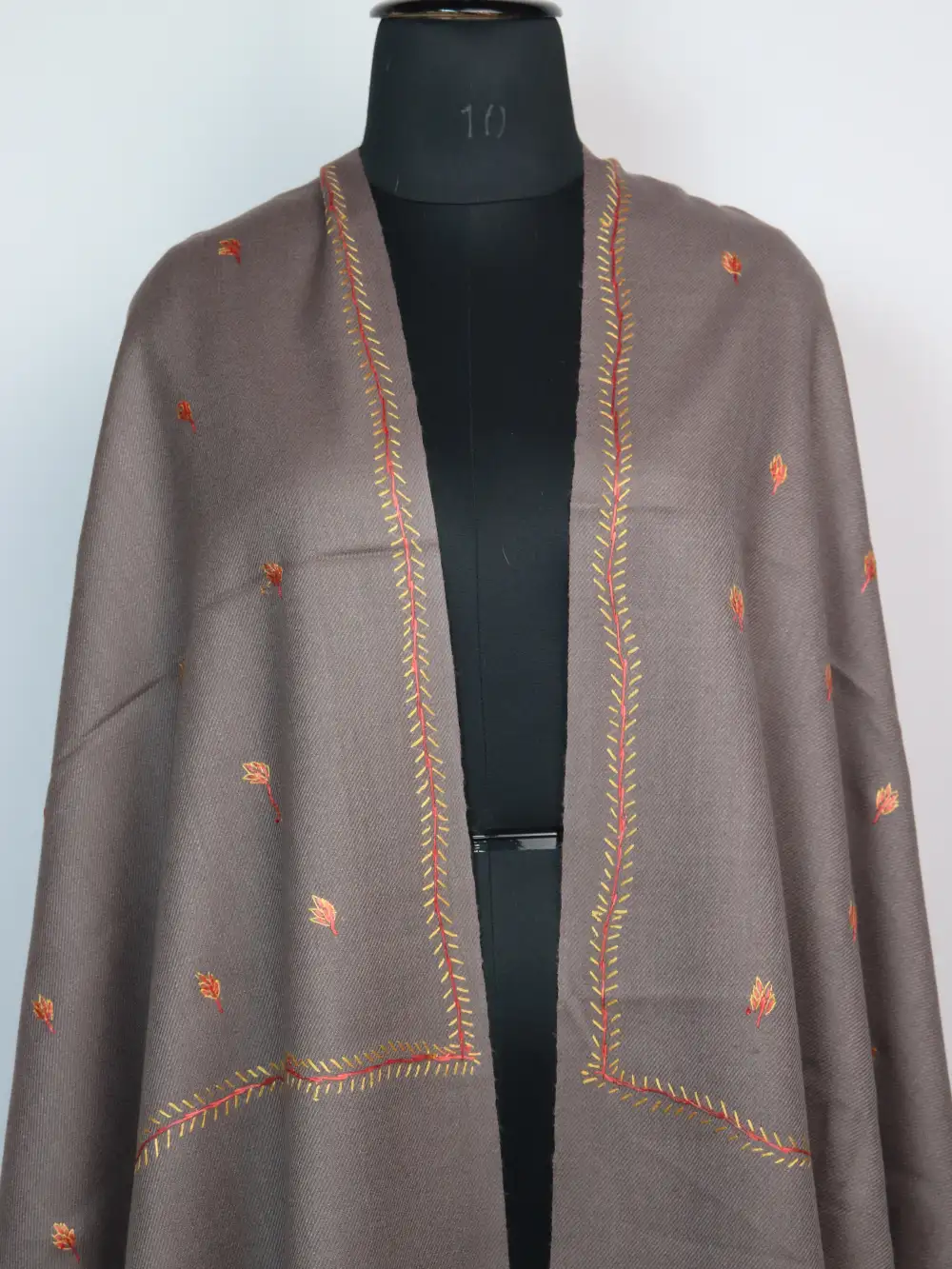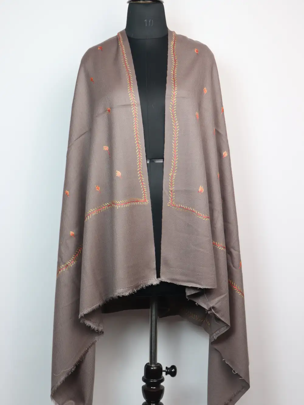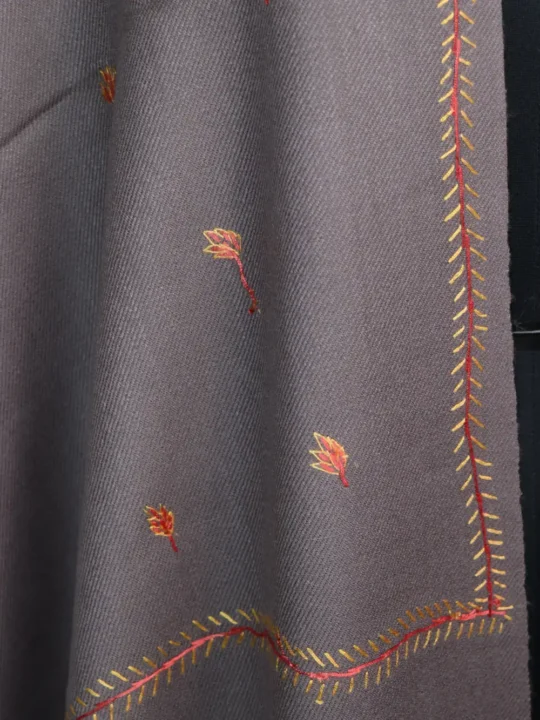 Designed using smooth cashmilon, ladies shawl appears in light purple colour for girls and women. It includes hand sozni embroidery along border all over it in bootis.