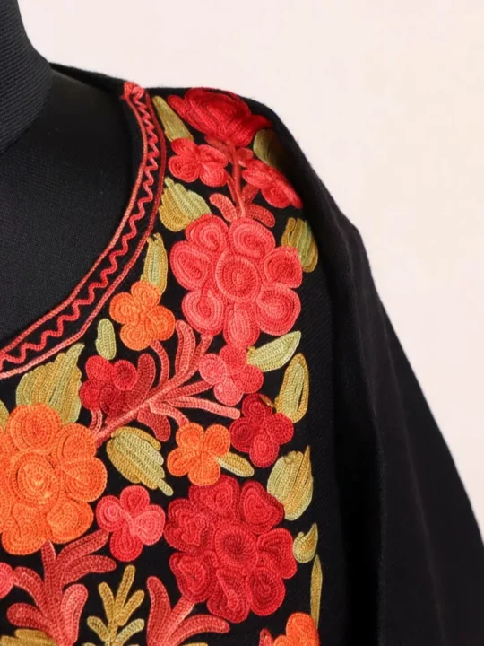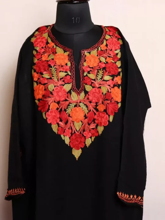 Mahnoor Black Kashmiri Pheran with Aari Embroidery – Stylish & Warm Winter Wear (W48)