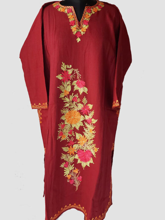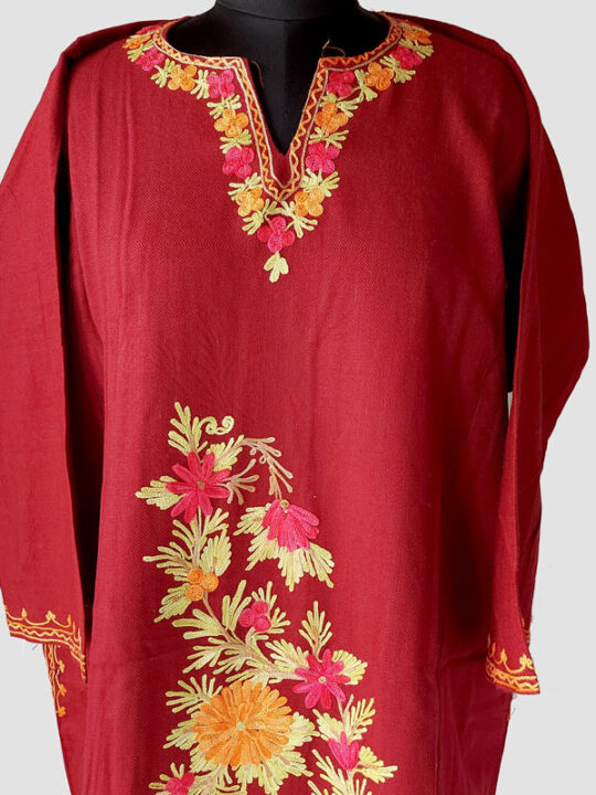 Maroon Beautiful Aari Work Cashmilon Pheran