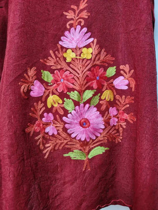 Kashmiri Red Hand Sozni Work Saree in Crepe