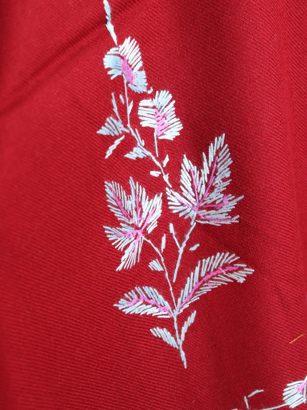 This is a hand sozni shawl in Cashmilon Wool shows continuous border embroidery and floral corner motifs, It has been crafted for women who like refined texture. The hand sozni shawl carries a clear Kashmiri signature, folds small and warms well, price 1299 is noted as a fair, artisanal value.