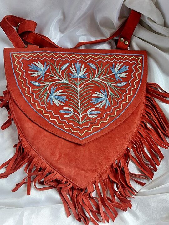 Dark Red Heart Shaped Bag With Aari Work