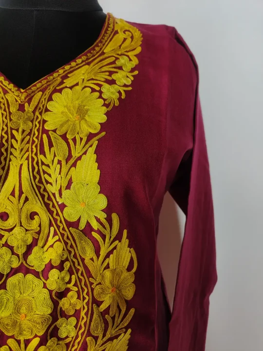 Maroon Kashmiri Long Cotton Zeba  Kurti with Aari Embroidery