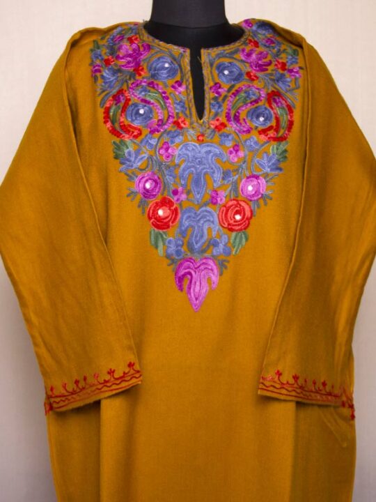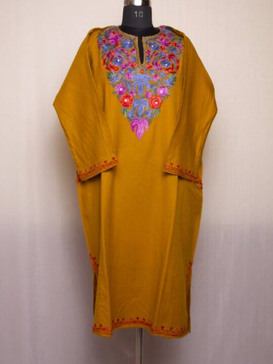Mustard Cashmilon Aari Pheran