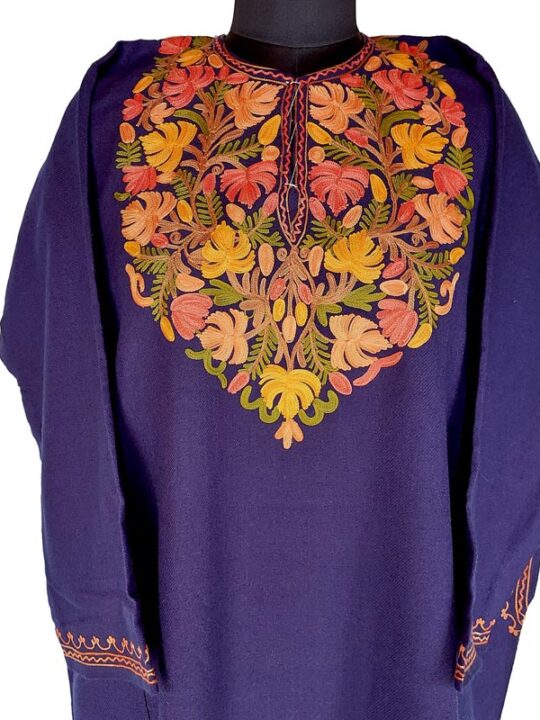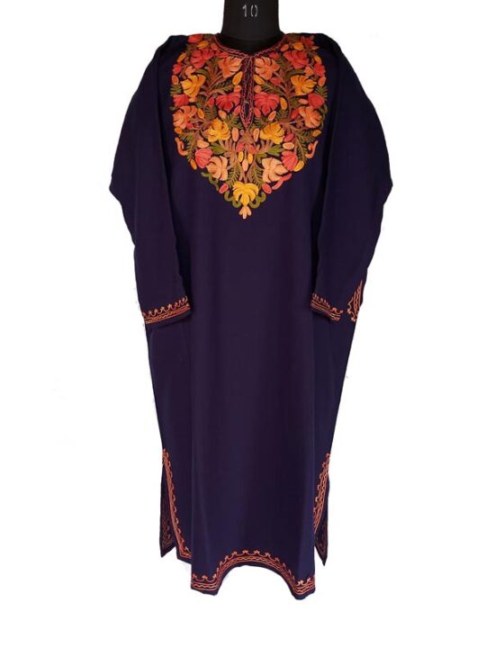 The 2nd picture ( full pheran view) gives the actual color of pheran. 1st Picture is taken with a flashlight hence color looks light