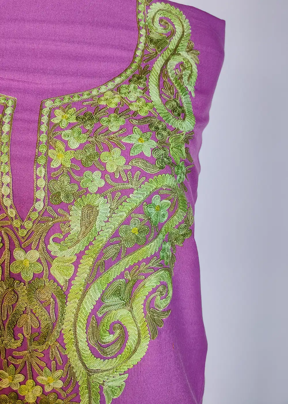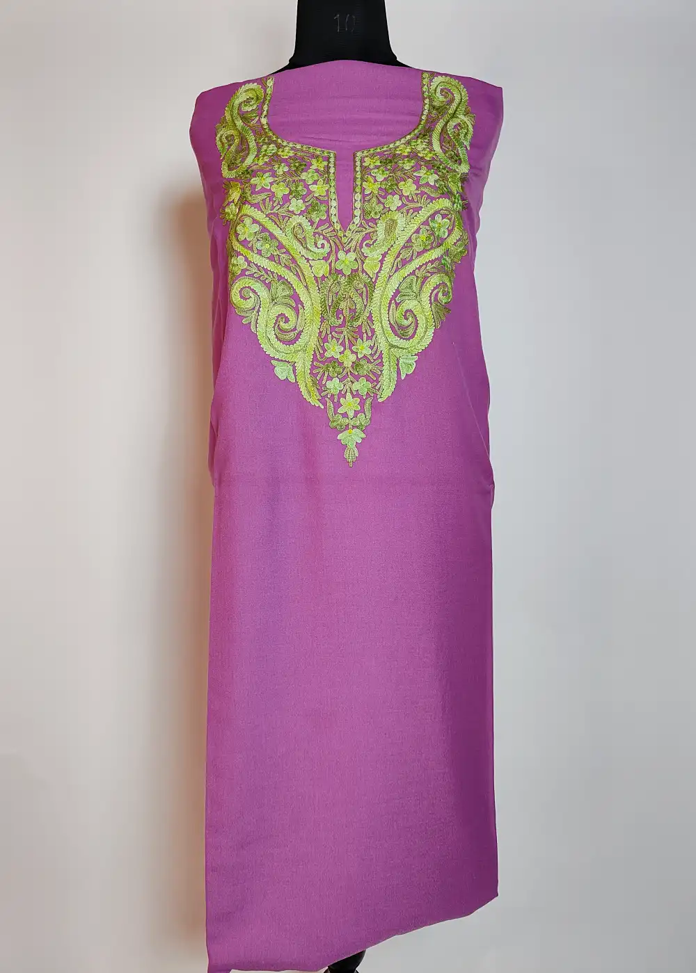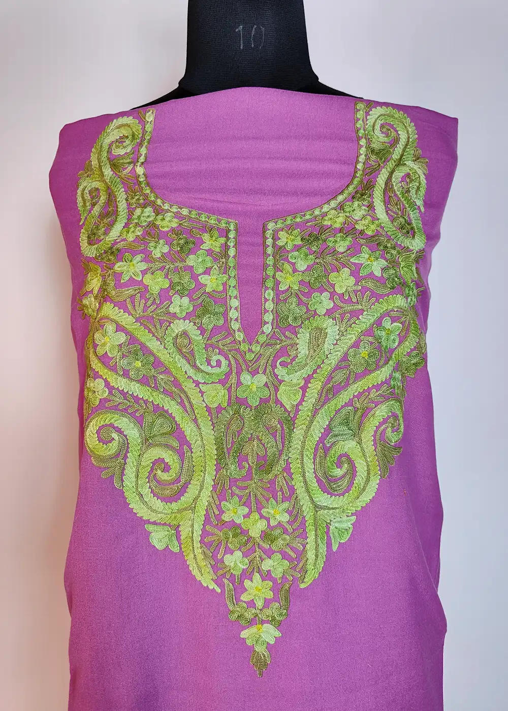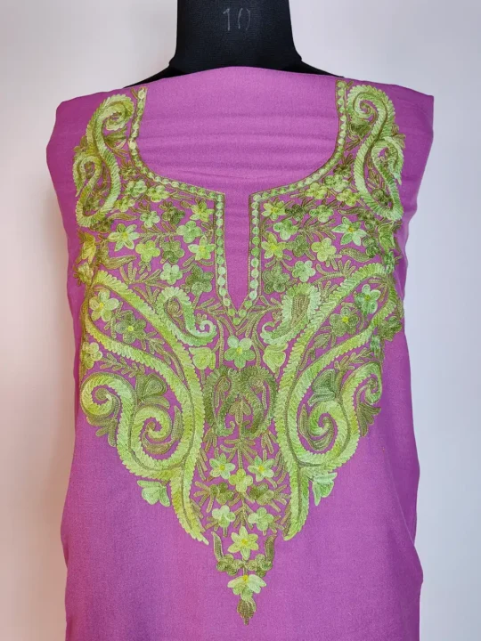 This salwar kameez suit comes in soft summer cool cotton material with fine floral aari embroidery placed at the neckline. The design stays classic for daily wear. A practical pick for cotton summer suits, offered unstitched for custom tailoring.