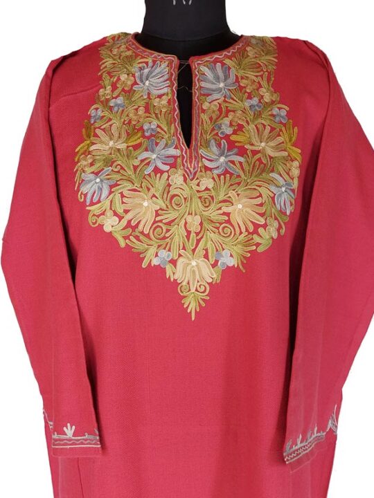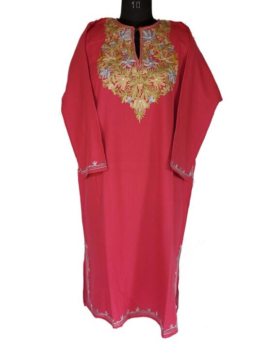 Pink Cashmilon Pheran With Aari Work