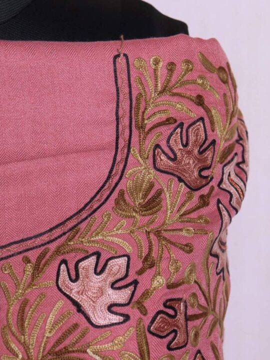 Adorn yourself with this amazing woolen unstitched salwar suit with aari work done on it.