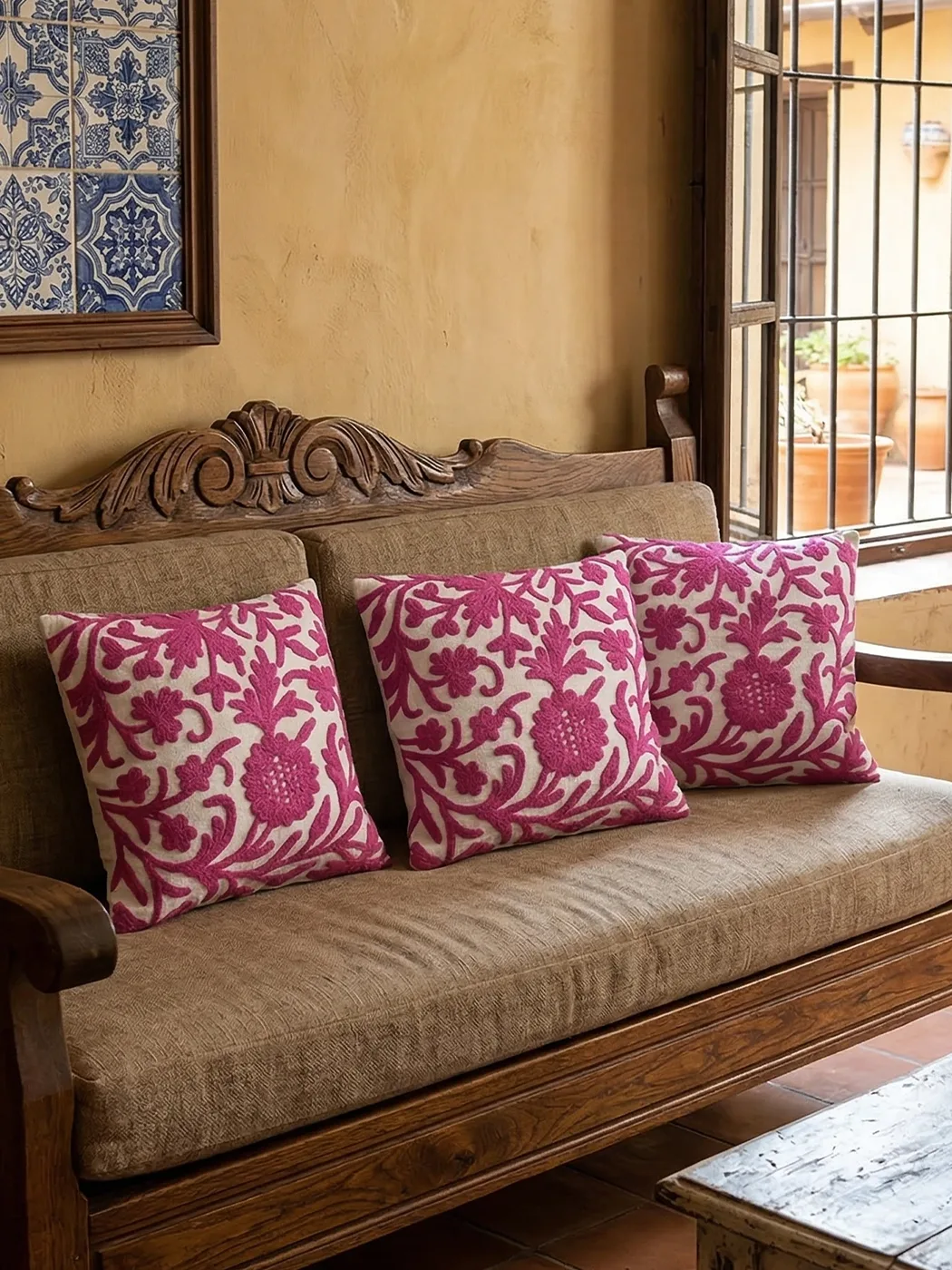 ELEGANT DESIGN: Intricately designed with Pink Kashmiri Crewel Hand Embroidery, adding a touch of opulence to your home décor.