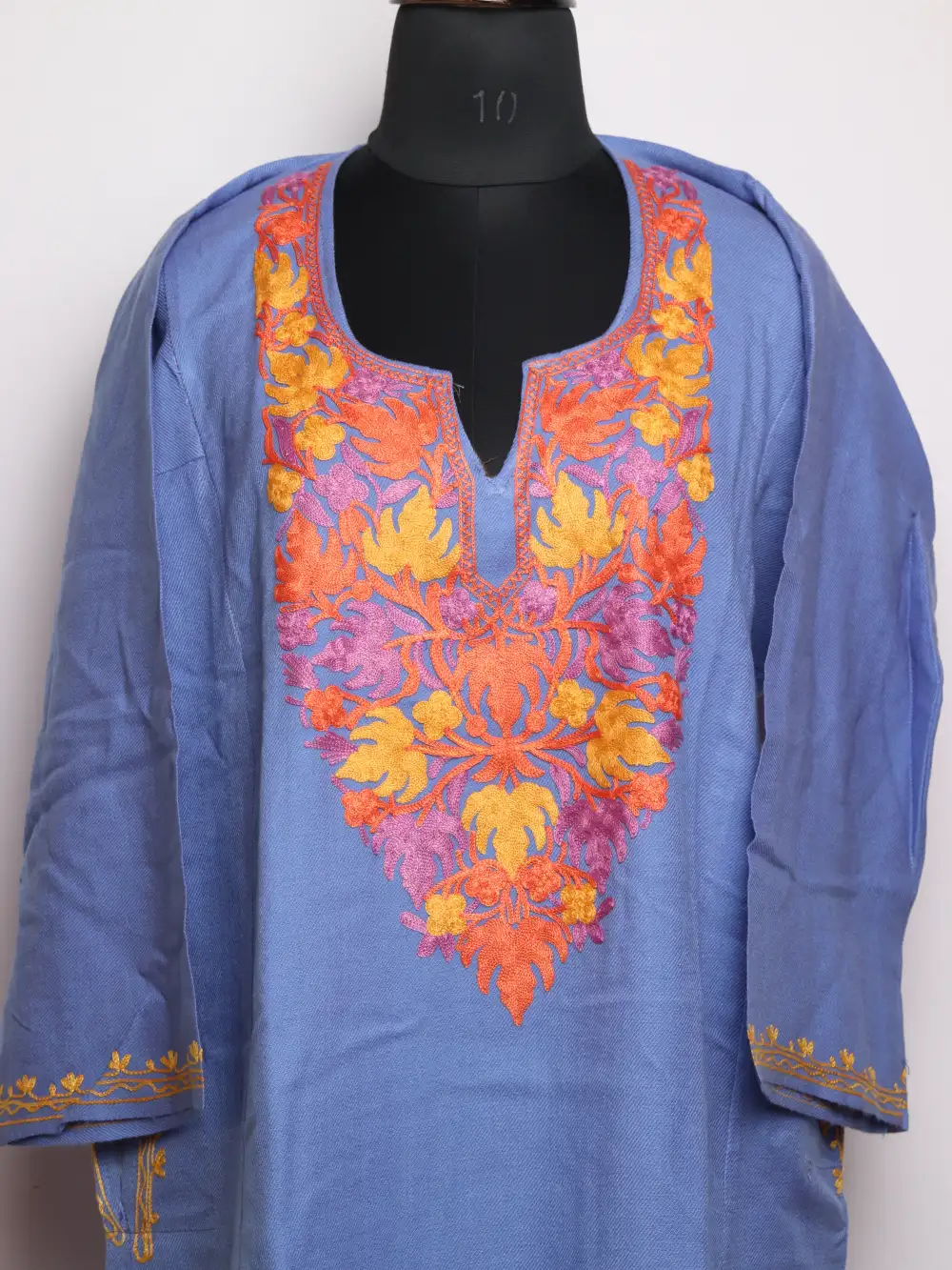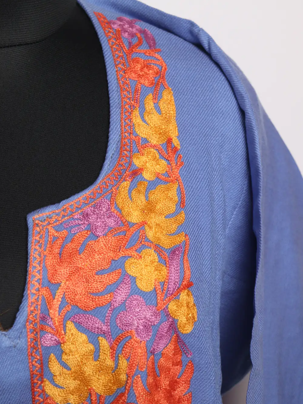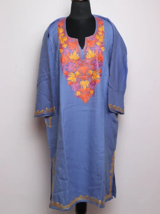 The cashmilon pheran has a decent look with chinari aari work around the neckline. The fabric of this faran is comfortable and warm.