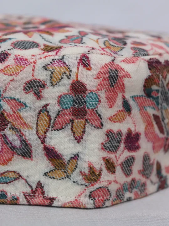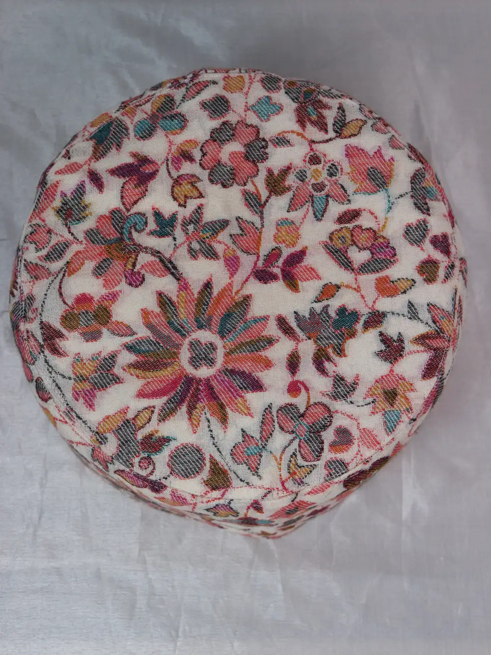 Premium Kani Cap in 24 size featuring a floral patterns all over it. This Kashmiri Kani topi radiates rich Kashmiri heritage and it is ideal for gifting, or formal gatherings. It is elegant yet comfortable, this Kani Cap makes a refined statement of traditional craftsmanship.