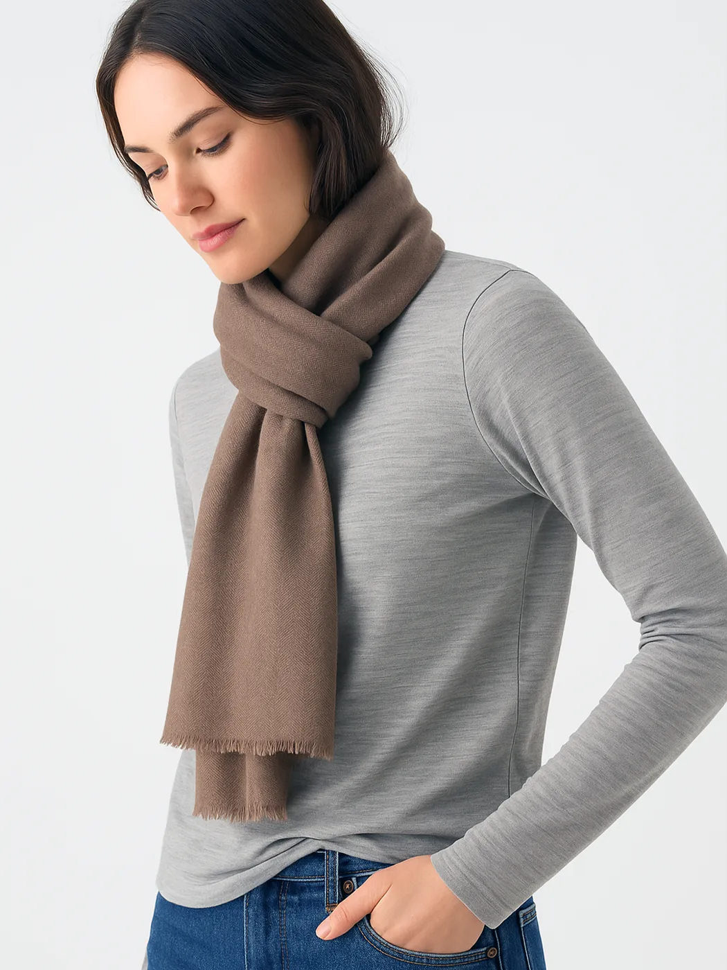 Luxury meets heritage in this women’s Muffler, it has been woven in the Diamond-weave pattern from pure pashmina. This soft brown tone, feather-light warmth, and Kashmiri finesse make this Muffler a quiet statement piece — it is an elegant enough for fine winter gatherings and refined layering.