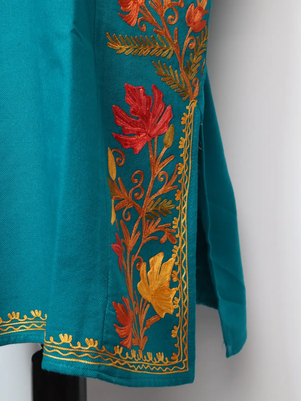 Dark Green Cashmilon Wool Nisa Short Pheran with Aari Embroidery (L:40)