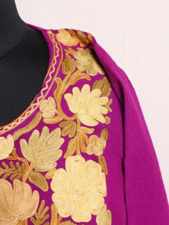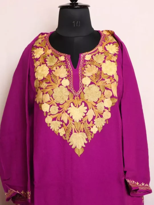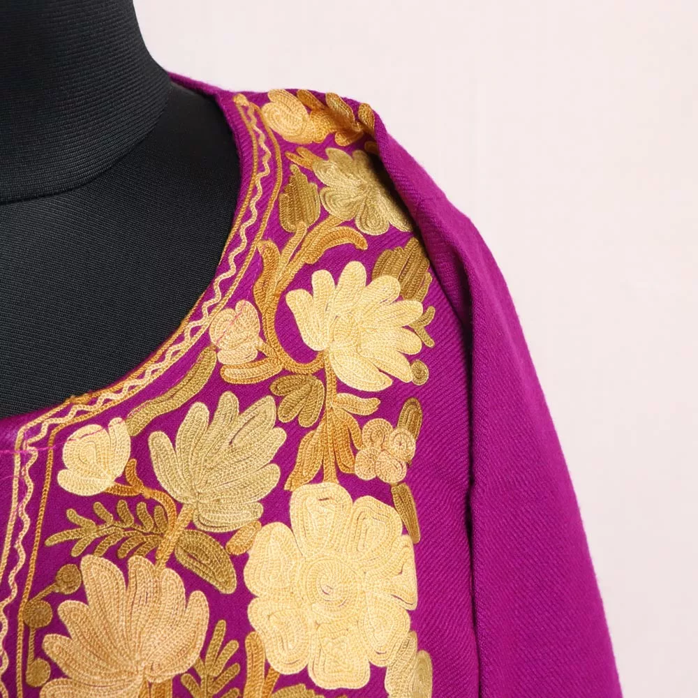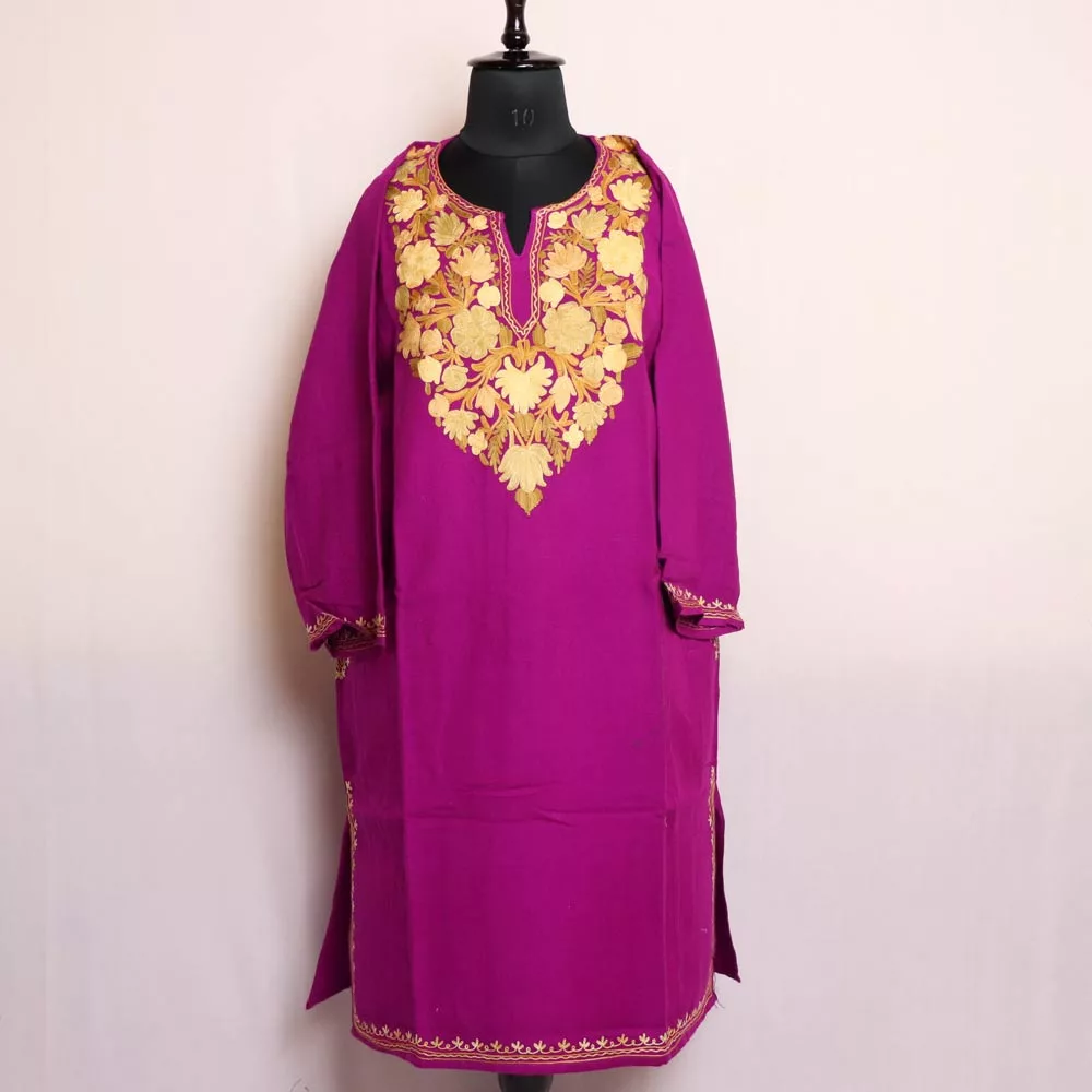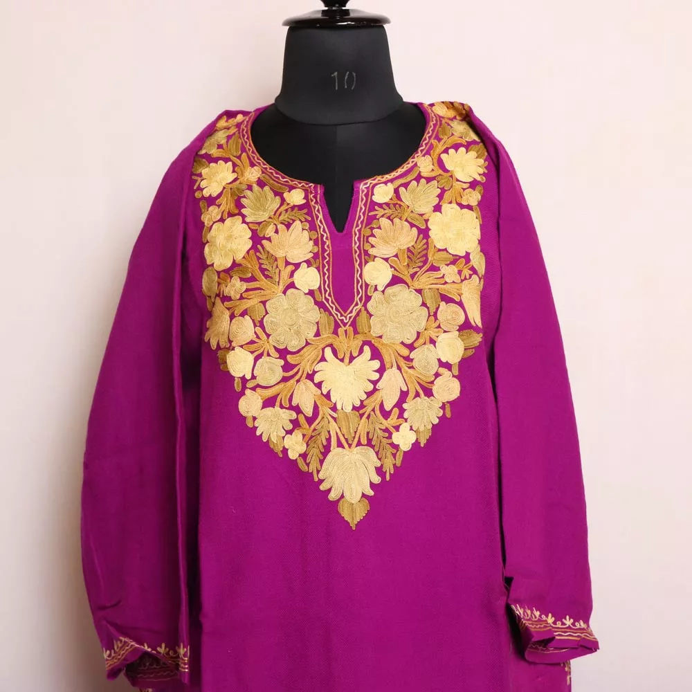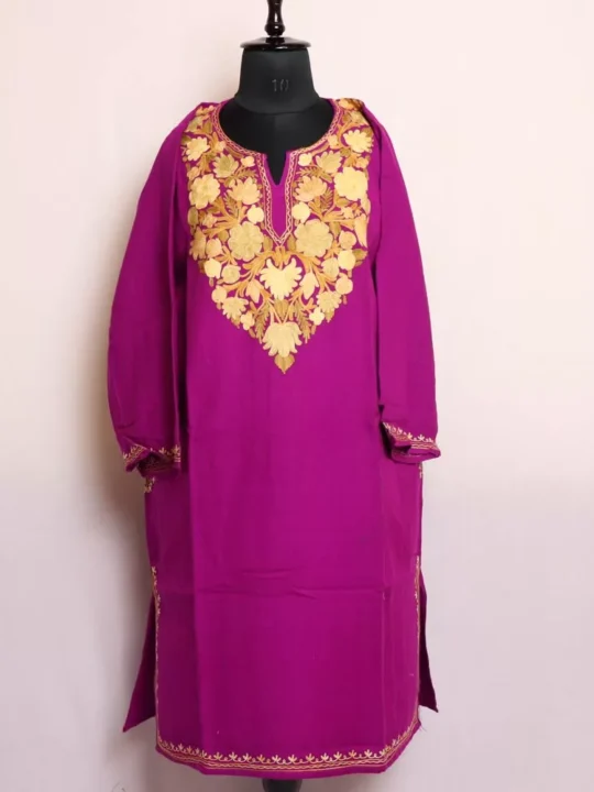 Razia Magenta Kashmiri Cashmilon Pheran with Aari Embroidery – Cozy Winter Wear (W48)