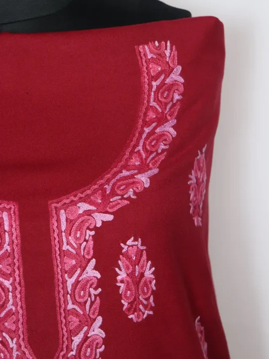 Long Pink Kashmiri Ruby Cotton Kurta Set with Aari Embroidery Abeer
