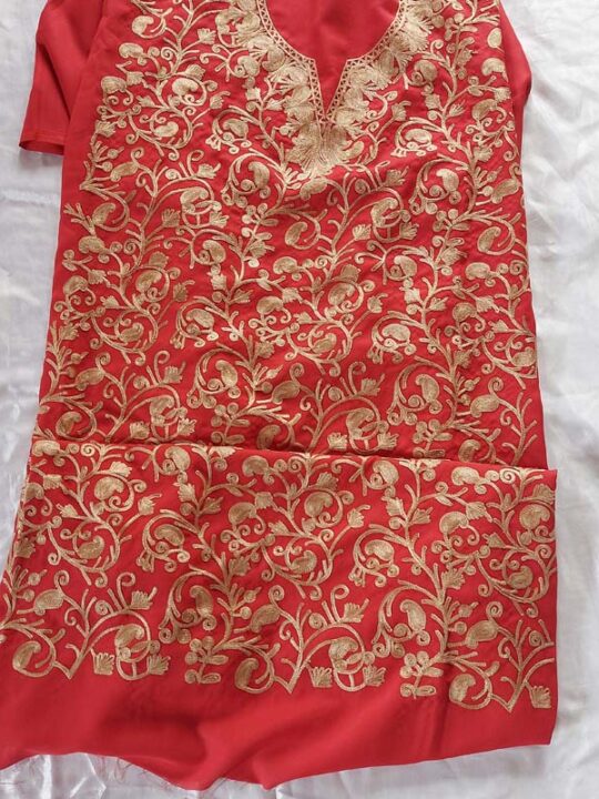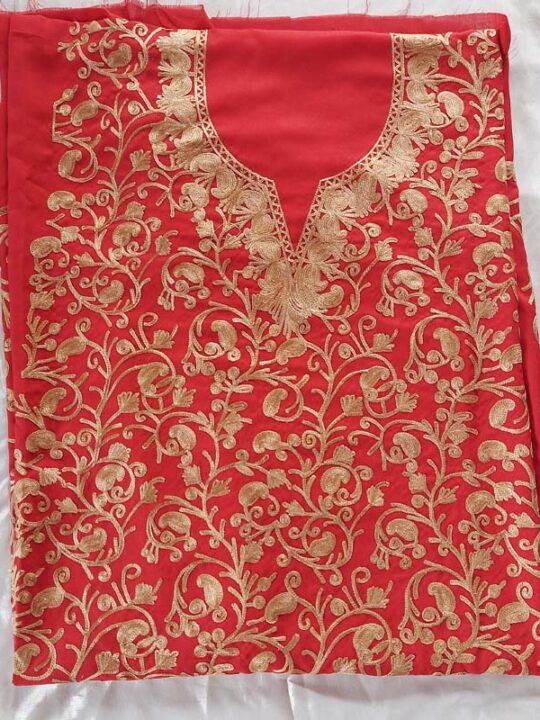 This is a beautiful summer cool cotton unstitched 2pc suit with machine aari work done on it.