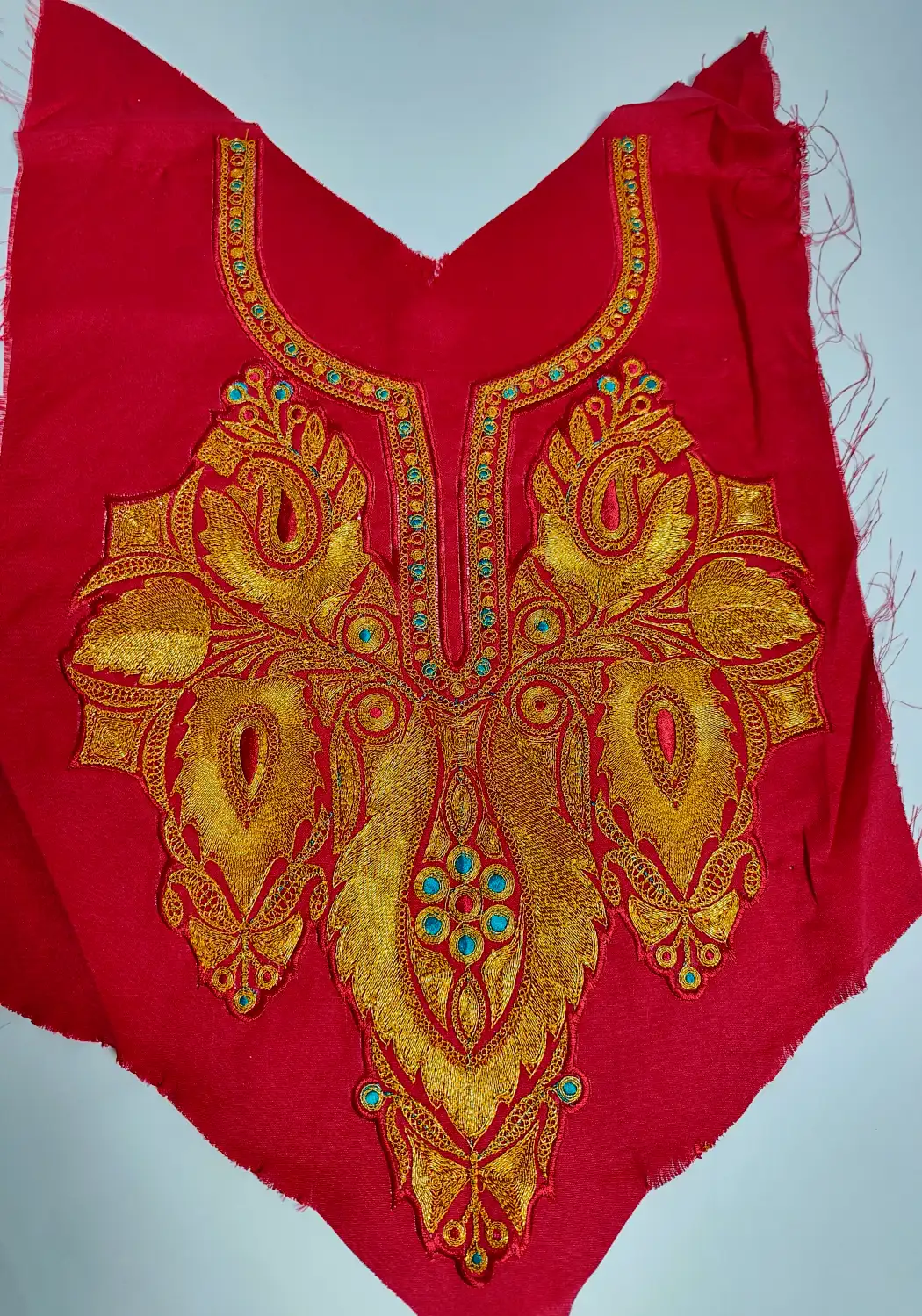 This sozni patch set carries detailed paisley embroidery across a rich maroon base. With a neckline patch, sleeve patches, and lace included, it feels complete and thoughtfully designed, that makes it easy to add a traditional Kashmiri touch to any outfit.