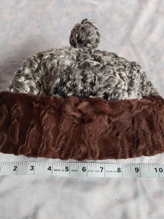 This Karakul beanie is made of Karakul wool. This has a grey color at the top and dark brown at the bottom. It’s handmade and takes 3-5 days to make. Due to the handmade nature, there may be some color differences.