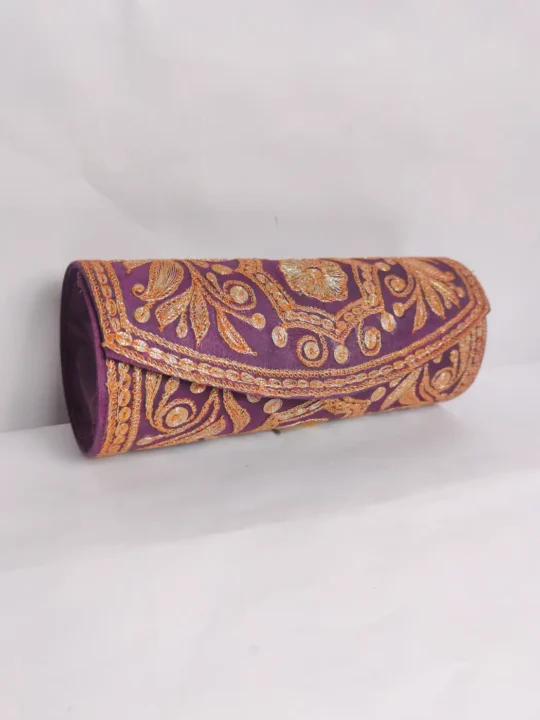 This clutch bag showcases botte tilla embroidery arranged in graceful floral and vine motifs. Crafted in maroon velvet, the design spreads evenly across the surface, making it a refined expression of Kashmiri tradition and detailed artistry.